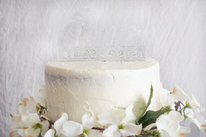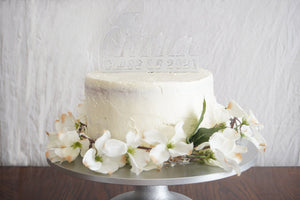 Our Acrylic Cake Toppers are food safe, simply insert into the top tier of your cake for a unique & sweet addition. Please do note that the metallic spray paint used on our wood, is not food-safe. We suggest wrapping the part of the stake that's going inside the cake with cling/saran wrap film if you intend to eat the part of the cake where the stake is in :)