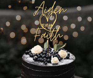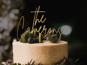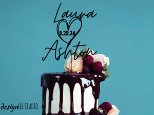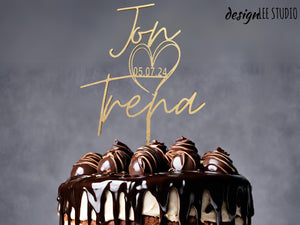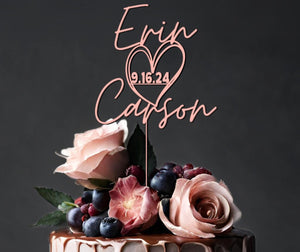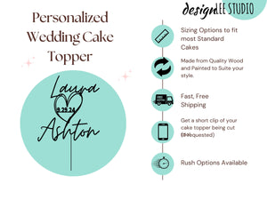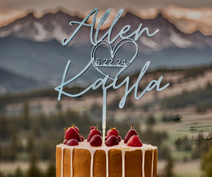 Personalized Wedding Cake Topper in several Width options to suite multiple Cake Sizes. Our custom cake toppers are suitable for many occasions to include Weddings, Bridal Showers, Engagement Parties, Anniversaries, and more! Our products are made from high quality sourced wood & they make the perfect keepsake/memento that will last for years to come