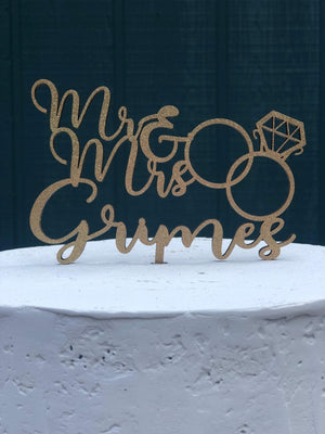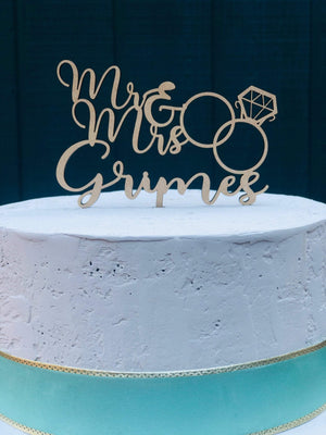 Our products are made from high quality sourced wood, they make the perfect keepsake/memento that will last for years to come. Personalized Mr. & Mrs. Couples Name Diamond Ring Cake Topper in several Width options to suite multiple Cake Sizes. This topper is suitable for many occasions to include Weddings, Bridal Showers, Engagement Parties, Anniversaries, and more! We want to make this perfect for your special day, so please don't hesitate to send us an Conversation so that we can provide you with world-class customer service!