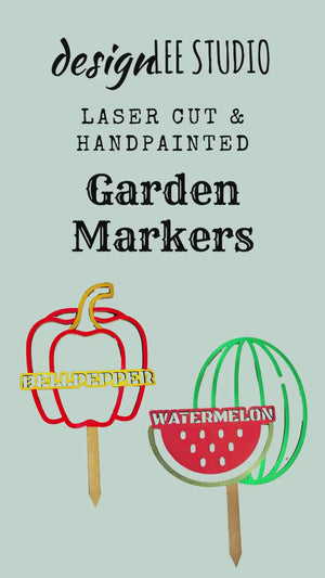 Add a special touch to your garden or flower bed with these custom, hand-painted garden markers. Add these great personalized gift vegetable herb plant stakes markers to each row! Choose your favorite veggies and if we missed any one in particular let us know. We would be happy to make it for you! These make great gifts. These markers are 8.5" Tall and 5"Wide