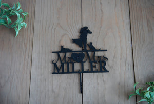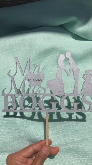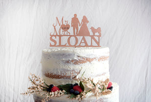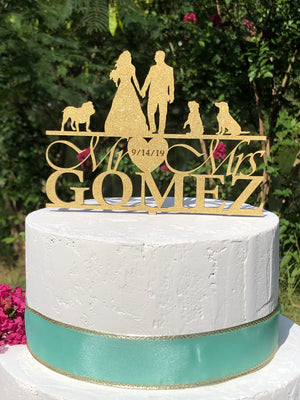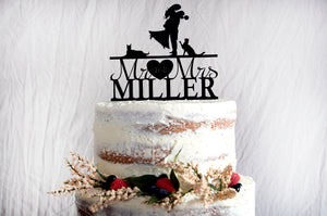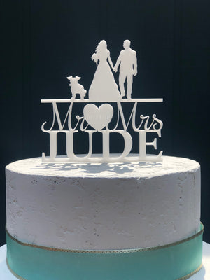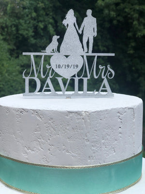 Custom Silhouette Couple Cake Topper with dog/cat in several Width options to suite multiple Cake Sizes. Personalized exactly to your liking with your own pets! Our products are made from high quality, cast acrylic, & quality sourced Wood & they make the perfect keepsake/memento that will last for years to come.